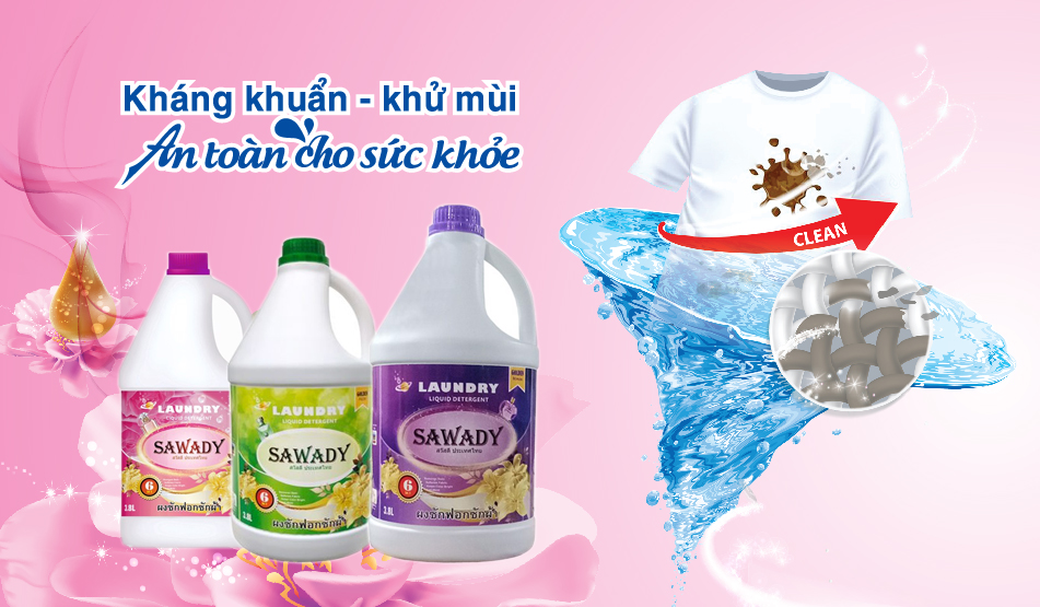 Nước giặt xả Sawady 6 trong 1 được sản xuất theo công nghệ và tiêu chuẩn chất lượng được cung cấp bởi Bangkok Royal Chemical Co.,LTD Thailad .Làm sạch quần áo hiệu quả với công nghệ Micro Active Fresh . Loại bỏ 8 loại mùi hôi : Mùi ẩm mốc , quần áo phơi không đủ nắng , phơi ban đêm , quần áo lâu không mặc , các vết dơ , bụi bẩn , mùi mồ hôi , mùi khói.Bảo vệ màu và chất vải .Thích hợp cho các loại vải mềm cần được chăm sóc đặc biệt như lụa , vải lanh , đồ lót , tã ...Hương hoa nhẹ nhàng , lưu lại trên từng sợi vải , thơm mát suốt cả ngày.