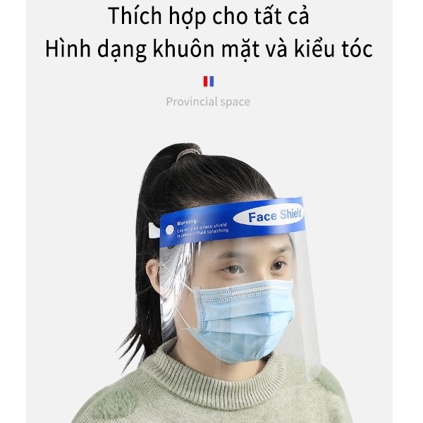 Tấm chắn chống giọt bắn trong suốt nhựa PVC có thể tháo màn chắn ra khi không cần dùng đến, màn chắn nhựa phủ hết khuôn mặt, bảo vệ toàn bộ khuôn mặt.