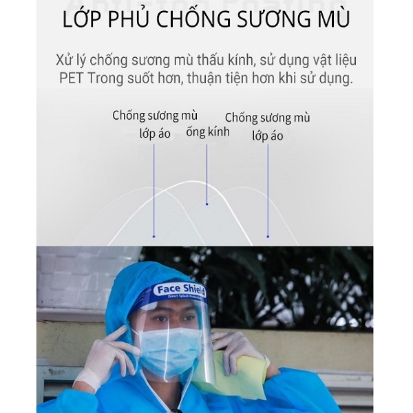 Mặt kính tấm chắn được xử lý chống sương mù thấu kính, sử dụng chất liệu PET trong suốt hơn, thuận tiện hơn khi sử dụng.